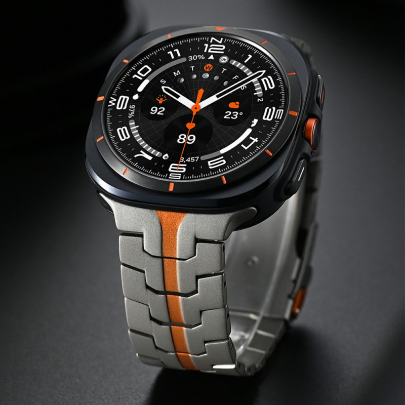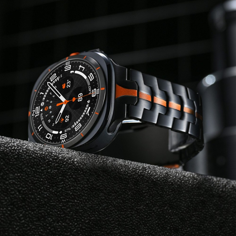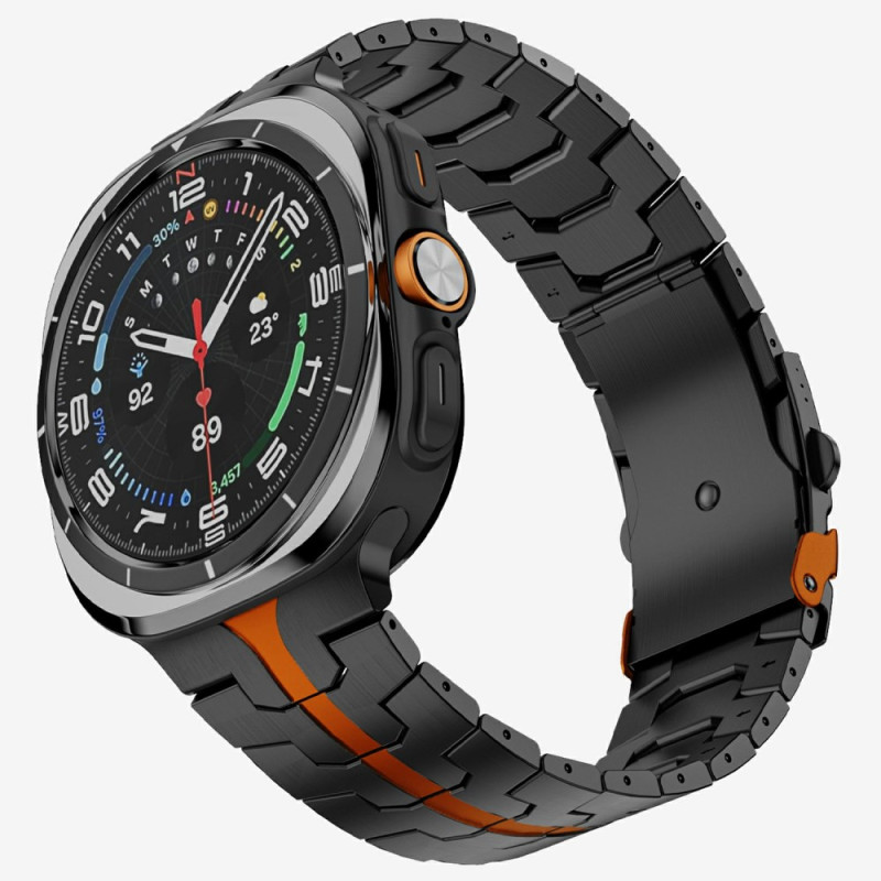 Upptäck vårt eleganta armband till Samsung Galaxy Watch8 Classic 46mm / Watch8 44mm / 40mm. Tillverkat av högkvalitativt rostfritt stål, erbjuder det exceptionell komfort och mångsidig stil. Med sitt sofistikerade dubbla vikspänne och polerade finish är detta armband perfekt för alla tillfällen, från affärer till fritid.