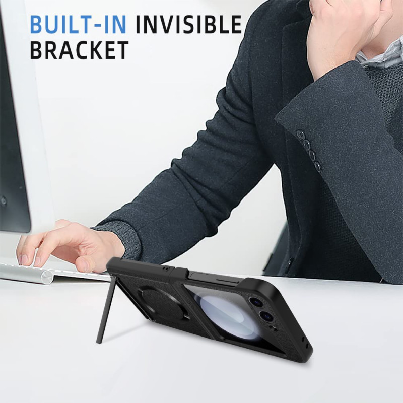 Upptäck vårt innovativa fodral till Samsung Galaxy Z Flip 7 FE / Z Flip 6. Det är MagSafe-kompatibelt och erbjuder ett komplett skydd med en elegant design. Med ett unikt CD-mönster, integrerat stativ och skyddsfilmer för skärm och lins kombinerar detta fodral funktionalitet och stil för din smartphone.
