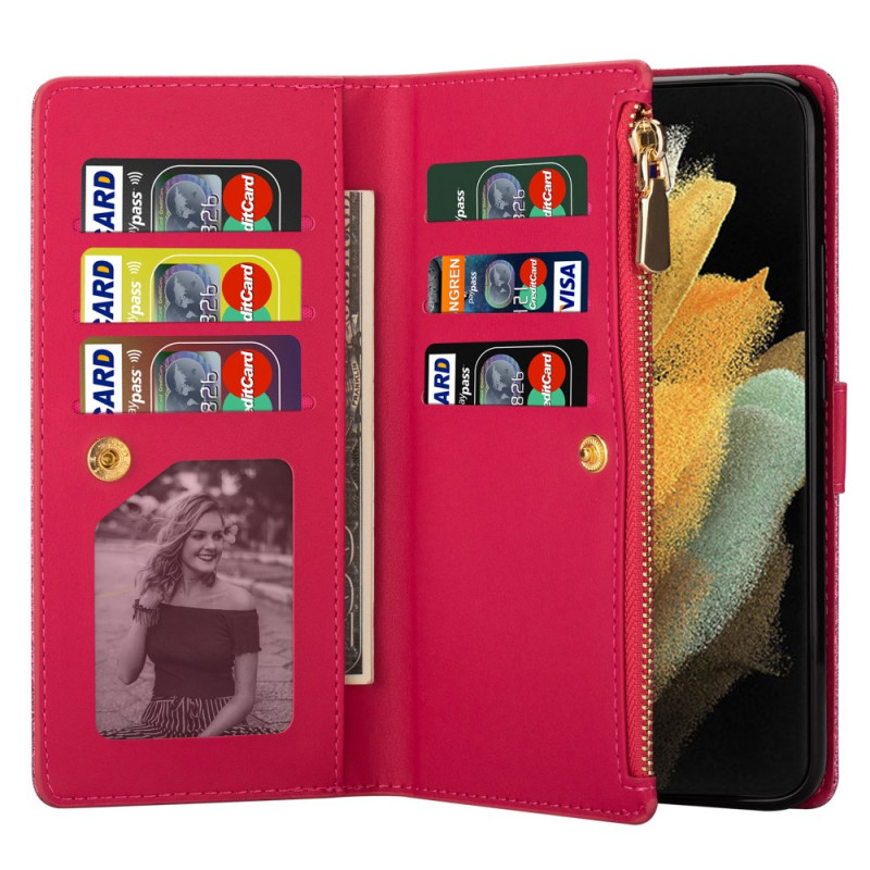 Ett fantastiskt glittrigt skydd för Samsung Galaxy Z Fold 3 5G med flera korthållare och en ficka med dragkedja för att hålla växelpengar eller som en bärbar väska.