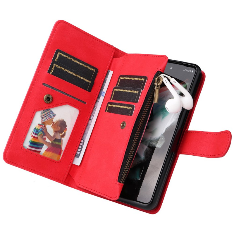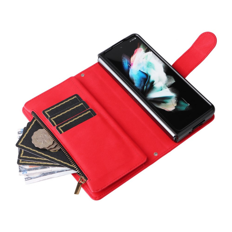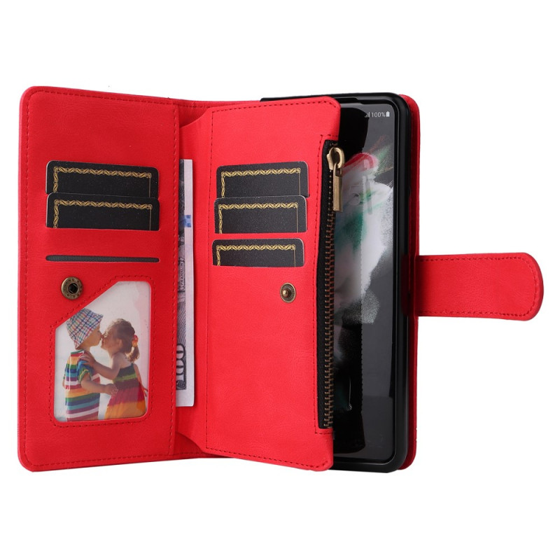 Ett business- och multifunktionellt fodral, perfekt för Samsung Galaxy Z Fold 3 5G med flera korthållare och en dekorativ nit.