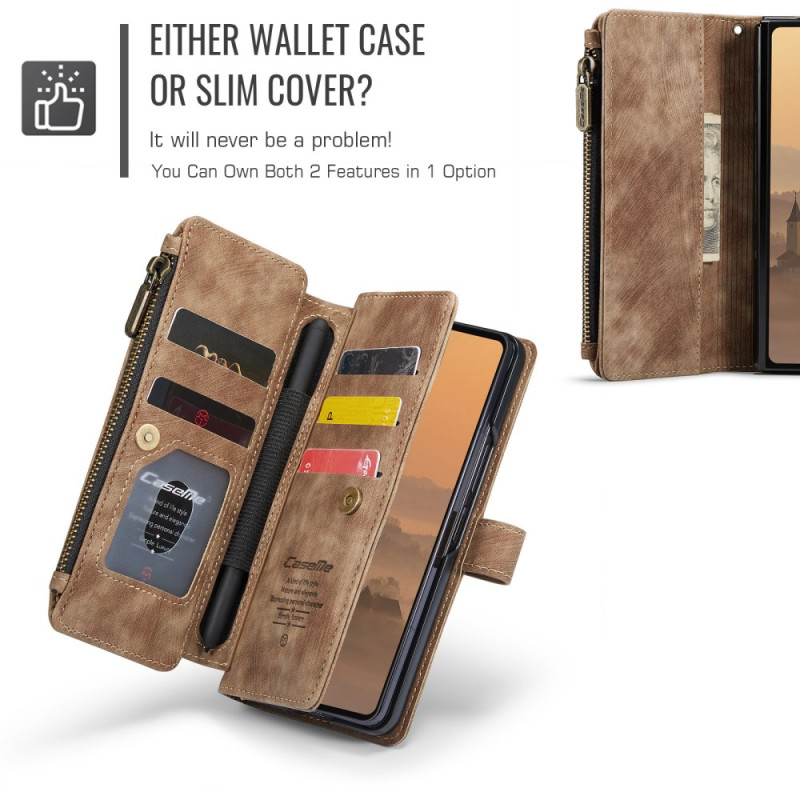 Upptäck vårt premiumskal för Samsung Galaxy Z Fold 7 5G. Tillverkat av slitstarkt PU-läder och TPU ger det ett pålitligt skydd och en snygg look. Med blixtlåsförsett fack, flera fack för kort och anteckningar, kickstand-funktion och magnetisk stängning kombinerar detta fodral funktionalitet och stil för optimal användning i vardagen.