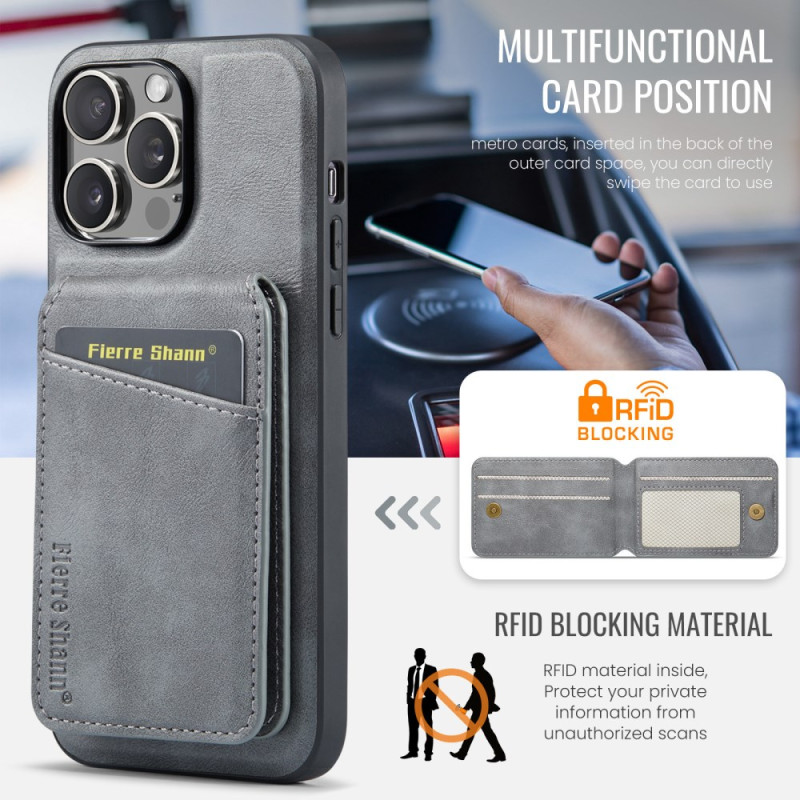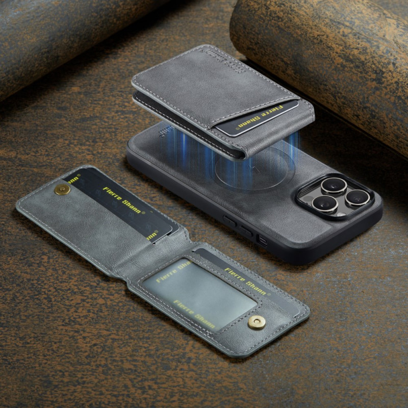 Skydda din iPhone 13 Pro med stil med detta multifunktionsfodral. Med en avtagbar korthållare med RFID-skydd, ett integrerat stativ och Mag-Safe-kompatibilitet kombinerar det stil och funktionalitet för daglig användning.
