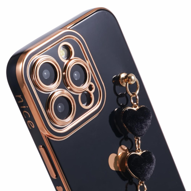 Protégez votre iPhone 13 Pro avec élégance grâce à cette coque au design romantique. Dotée d'un motif cœur en relief et d'une dragonne en peluche, elle allie style et praticité. Les bords électroplaqués offrent un effet métallique brillant.