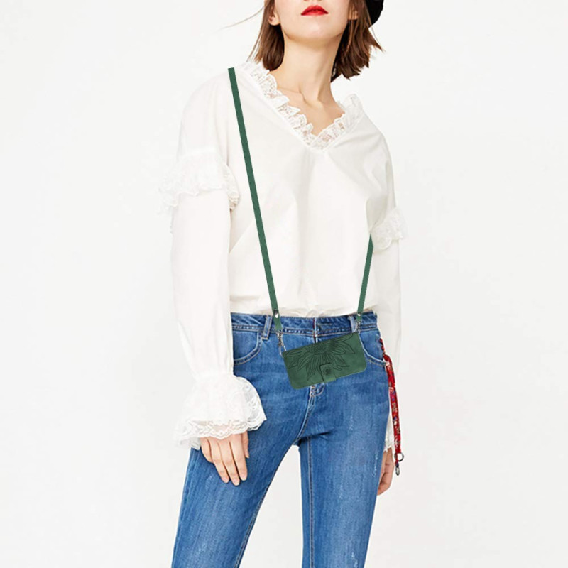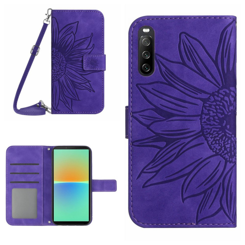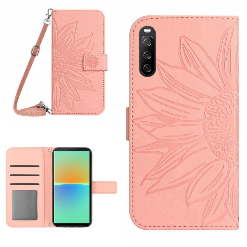 Det solrosmönstrade fodralet i konstläder har en justerbar axelrem så att du enkelt kan bära din Sony Xperia 10 IV.