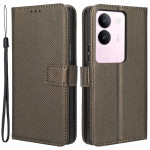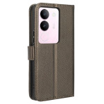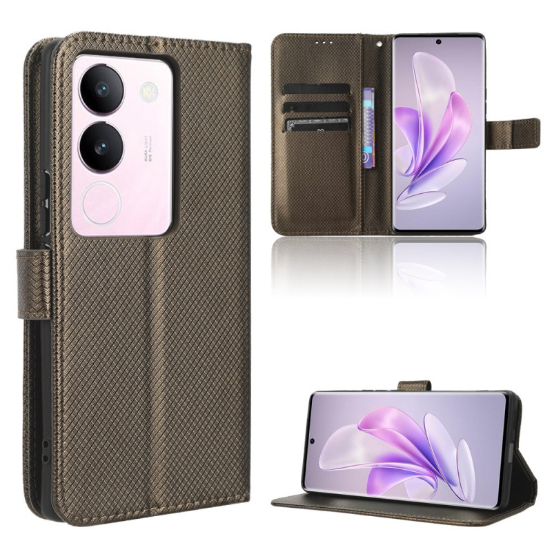 Elegant plånboksfodral med diamantstruktur för Vivo V29 5G. Med kortfack, kontantficka och integrerat vikbart stativ. Säkert magnetlås och handrem medföljer för enkel transport.