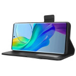 Elegant plånboksfodral i strukturerat PU-läder för din vivo smartphone. Har ett säkert magnetlås, flera fack för kort och kontanter och handsfree-stöd. Integrerat skydd mot vardagliga stötar, med handrem inkluderad.