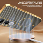 Snyggt och robust skydd för din Vivo V50 Lite. Flexibel TPU-design med premium elektropläterad finish och kolfiberstruktur som inte ger märken. Upphöjda kanter för att skydda skärmen och kameran, exakta utskärningar och magnetisk laddarkompatibilitet.