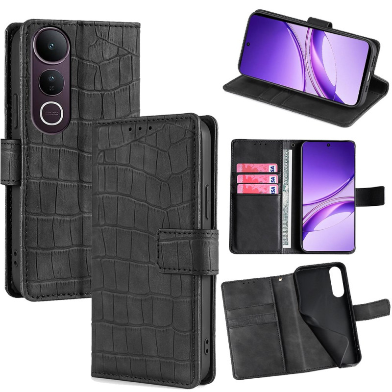 Upptäck detta eleganta fodral till Vivo V50 Lite 5G i krokodilliknande texturerat PU-läder. Med 3 kortplatser och ett vikbart stativ kombinerar det lyxig stil med vardaglig funktionalitet för optimalt skydd av din smartphone.