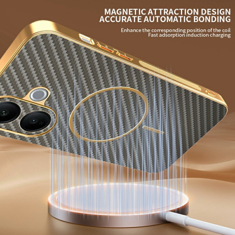 Snyggt och robust skydd för din Vivo V60 Lite. Flexibel TPU-design med premium elektropläterad finish och kolfiberstruktur. Motstår fingeravtryck och ger optimalt skydd mot stötar och repor.