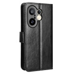 Elegant plånbok i premium PU-läder med åldrad textur. Med 3 kortfack, kontantfack och säker magnetstängning. Integrerat fällbart stativ för handsfree-visning och handrem.