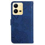 Snyggt plånboksfodral med präglade fjärilar och blommor till Vivo X80 Lite 5G. Fullt stötskydd, justerbart stativ, kortfack och axelrem ingår. Säker magnetisk stängning.
