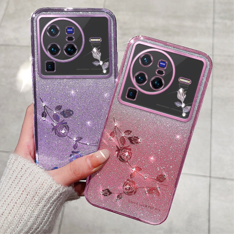 Skydda din vivo X80 Pro 5G med stil med detta TPU-fodral som pryds av skimrande paljetter, ett tidlöst blommönster och fina strassstenar. En glamorös design som kombinerar stil med vardagsskydd.