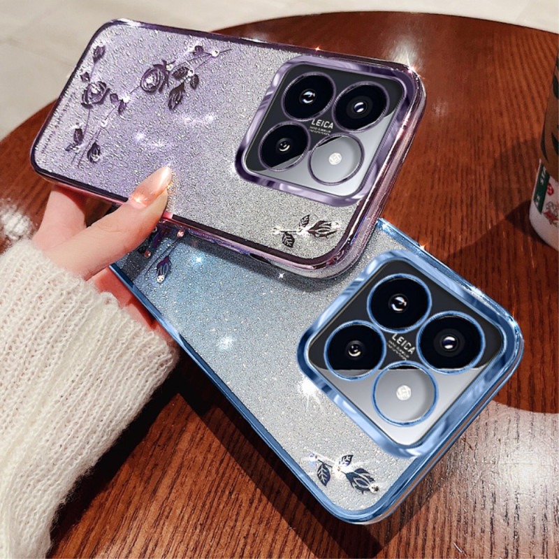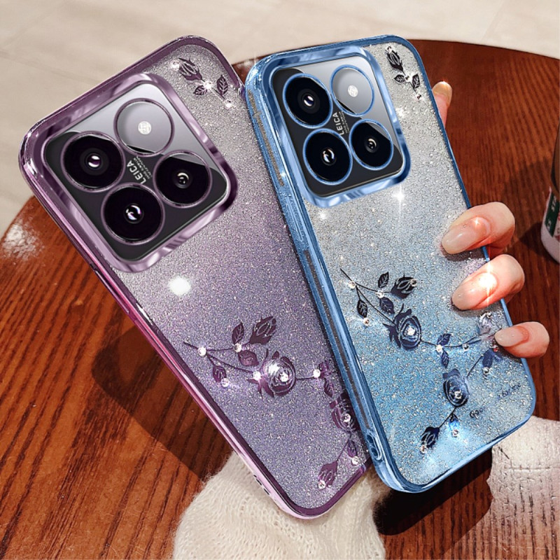 Den glittrande designen med blommotiv och gradientglitter ger din enhet en sofistikerad touch.