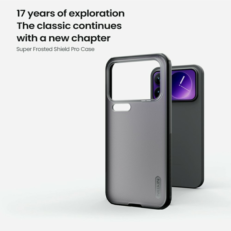 Upptäck Super Frosted Shield Pro-fodralet för Xiaomi 17 Pro Max. Med en kombination av hård PC och mjuk TPU ger det ett robust skydd med en elegant design. Dess genomskinliga svarta frostat yta motstår slitage, repor och fingeravtryck. UV-matt färgteknik garanterar en behaglig känsla och ett raffinerat utseende. Enkel installation för optimalt skydd i vardagen.