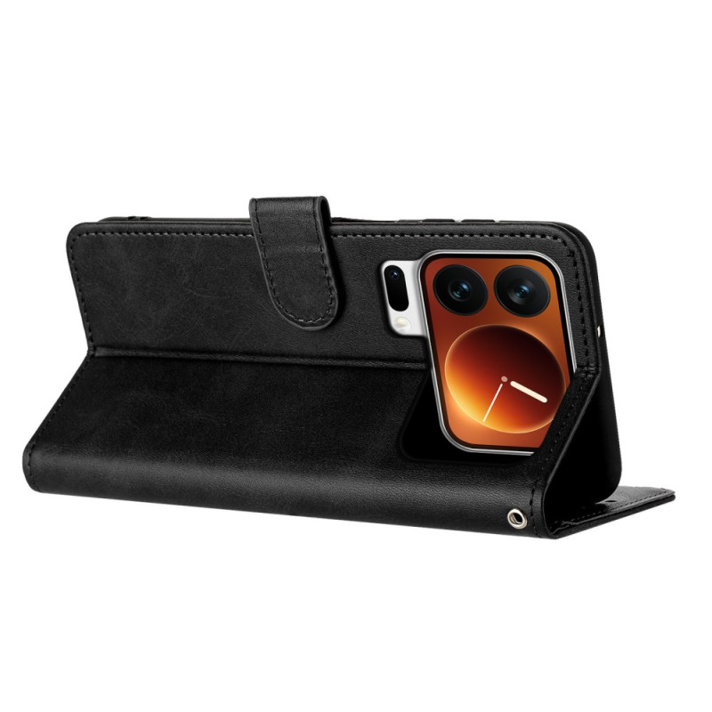 Multifunktionellt plånboksfodral för Xiaomi 17 Pro med magnetisk flik och integrerat stativ. Har 3 kortfack och en kontantficka. Fullt skydd mot stötar och repor tack vare den förstärkta hörndesignen.