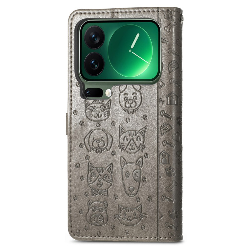 Skydda din Xiaomi 17 Pro med stil med detta plånboksfodral i syntetiskt läder med bedårande katt- och hundmotiv. Det har flera kortplatser, ett integrerat visningsstativ och en praktisk handrem för säker transport.
