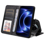 Snyggt plånboksfodral i texturerat PU-läder för Xiaomi 17 Ultra 5G. Multifunktionell design med integrerad korthållare, handsfree visningsstativ och säker magnetisk stängning. Fullt 360° skydd med tåligt TPU-skal.