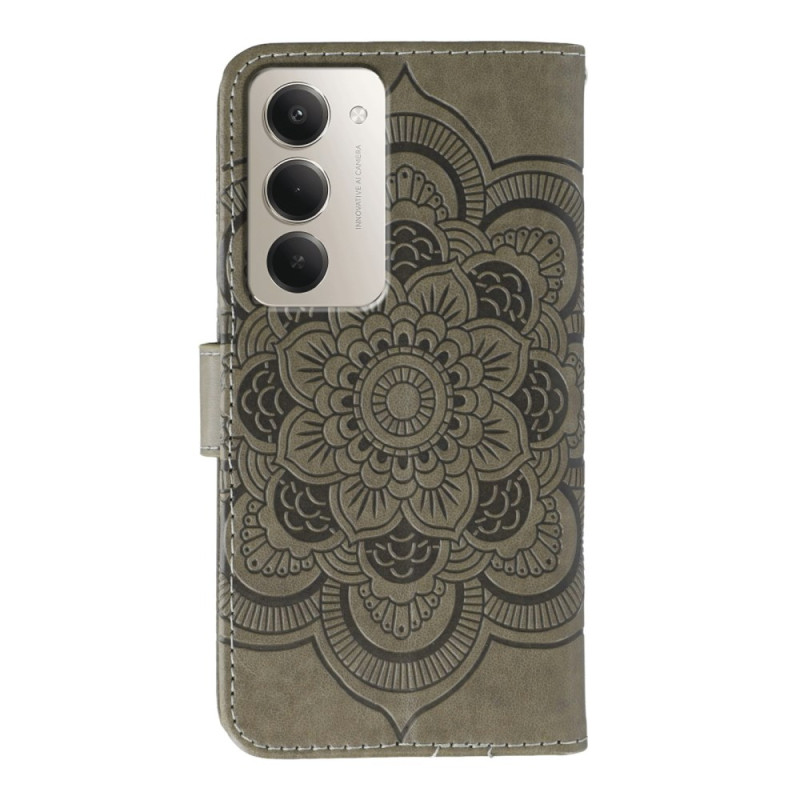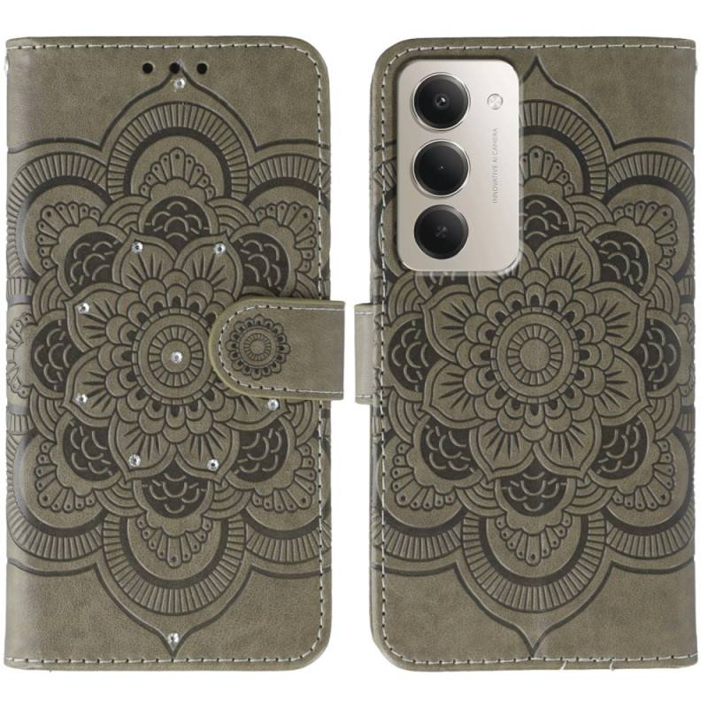 Upptäck vårt eleganta PU-läderfodral till Xiaomi Redmi 15 4G. Utsmyckat med ett raffinerat mandalamotiv och gnistrande strassstenar kombinerar det stil och skydd. Med praktiska funktioner som integrerat stativ, kortfack och handrem är detta fodral både snyggt och funktionellt.