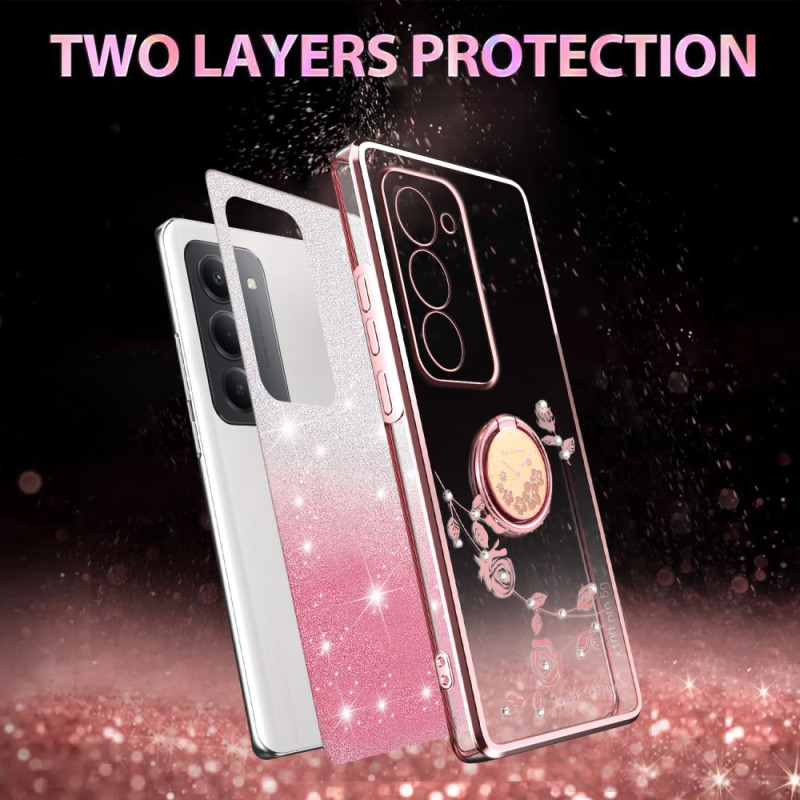 - 【Sparkling design】 Detta skal har tidlös blommig dekoration och strass med en gradient glitterfinish, vilket ger en touch av elegans till din enhet