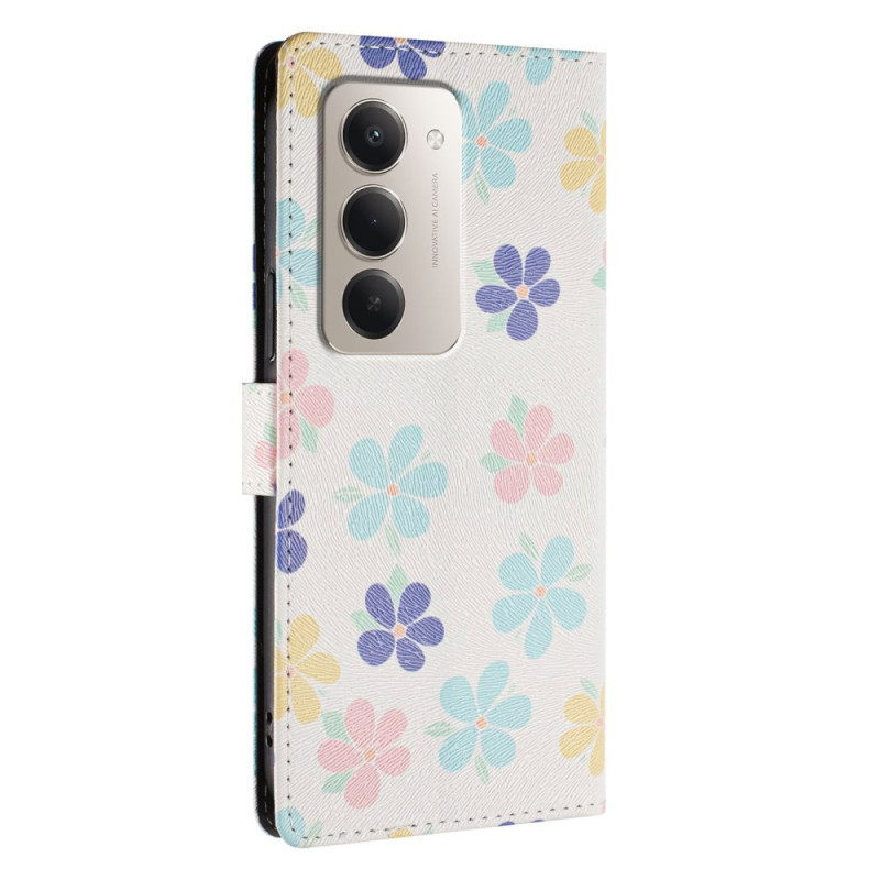 Skydda din Xiaomi Redmi 15 5G / 4G med stil med detta plånboksfodral i PU-läder. Fodralet har ett färgglatt blommönster och ger ett hållbart skydd mot droppar och repor. Med praktiska funktioner som kortplatser, en biljettficka och en avtagbar handledsrem kombinerar detta fodral design och funktionalitet,