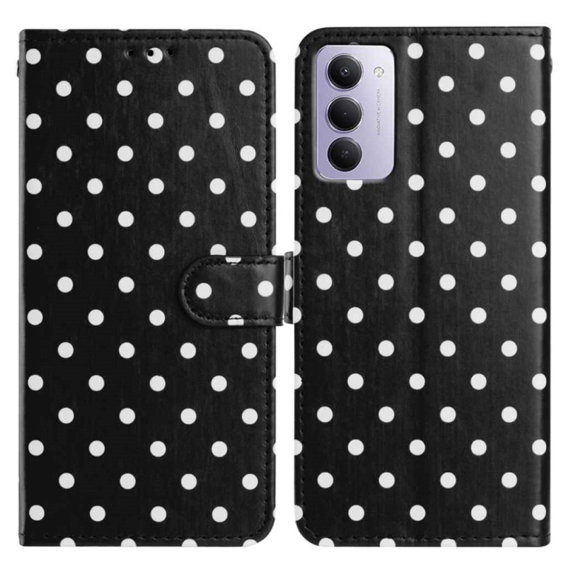 Elegant plånboksfodral med prickar för Xiaomi Redmi 15 5G/4G. Sofistikerad design med prickmotiv, justerbar stativfunktion, 3 kortfack och säker magnetstängning. Fullständigt skydd i högkvalitativt PU-läder.