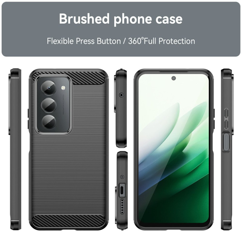 Skydda din Xiaomi Redmi 15 5G med detta premium TPU-fodral. Dess design med borstad kolfiberstruktur ger ett bekvämt grepp och ett snyggt utseende. Det är fingeravtrycksresistent och ger optimalt skydd mot stötar och repor.