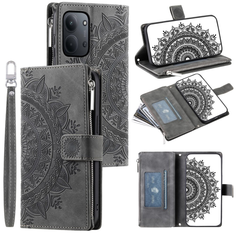 Upptäck vårt snygga plånboksfodral för Xiaomi Redmi 15C 4G / 5G. Tillverkat av högkvalitativt PU-läder, erbjuder det ett hållbart skydd och en attraktiv design med sitt mandala-blommotiv. Det är funktionellt och praktiskt och har gott om förvaringsutrymme för dina kort och pengar.