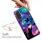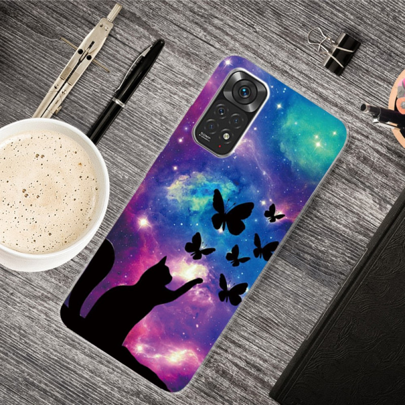 Ett fodral för Xiaomi Redmi Note 12 Pro 4G / Note 11 Pro / Note 11 Pro 5G med ett unikt utseende, med en katt och fjärilar i rymden för vardagligt skydd.