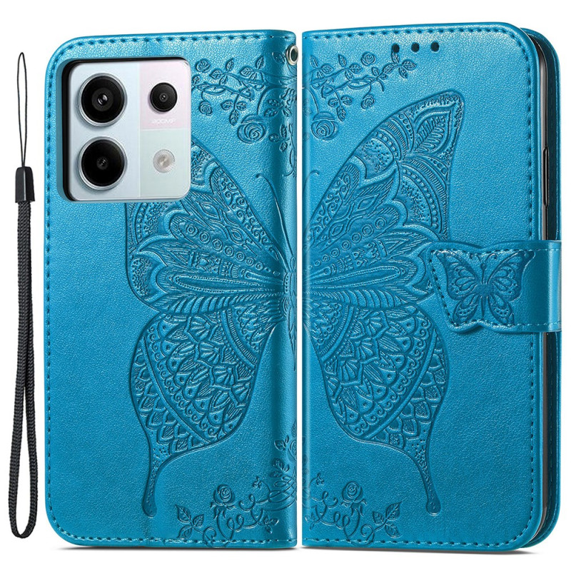 Upptäck vårt plånboksfodral för Xiaomi Redmi Note 13 Pro 4G / 5G / Poco X6 5G, prytt med ett magnifikt fjärilsmotiv i barockstil.