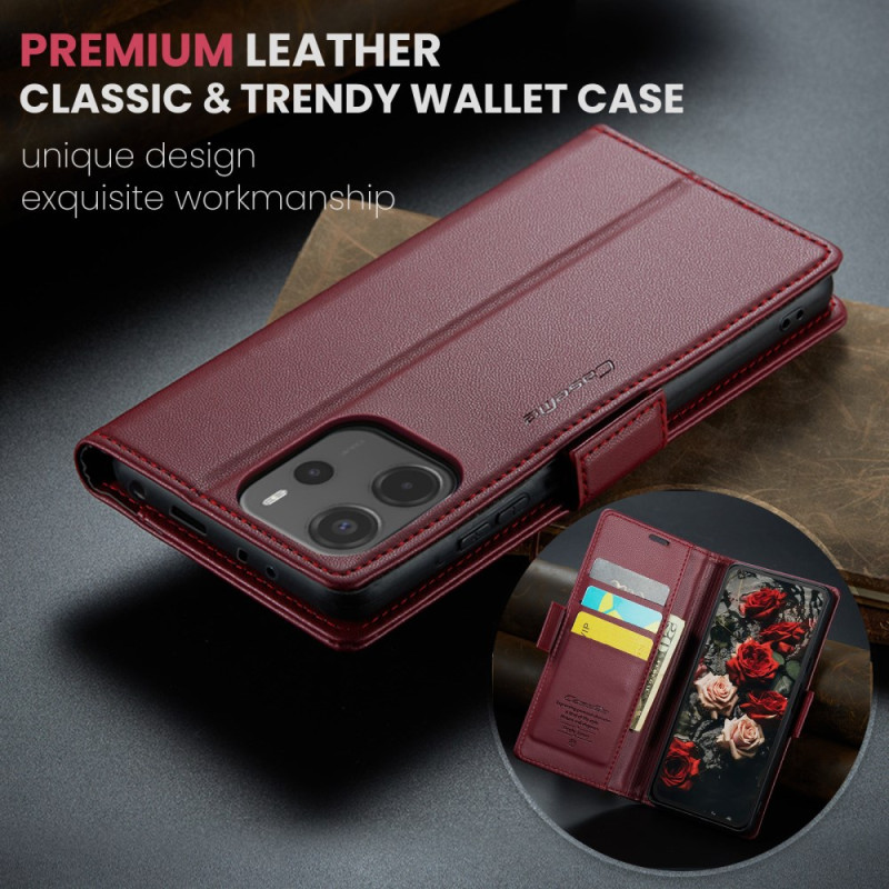 Plånboksfodral i läder för Xiaomi Redmi Note 14 med RFID-blockeringsteknik, ger komplett skydd och praktiska funktioner.