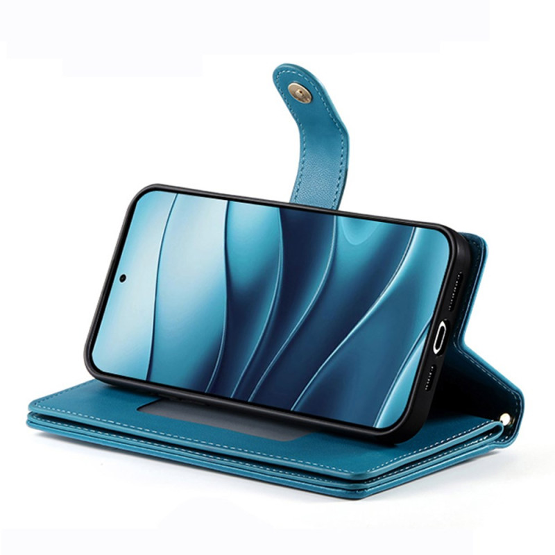 Upptäck vårt mångsidiga fodral för Xiaomi Redmi Note 14 4G. Det kombinerar skydd, funktionalitet och stil och har en plånbok med dragkedja, kortfack, en handledsrem och en justerbar axelrem.