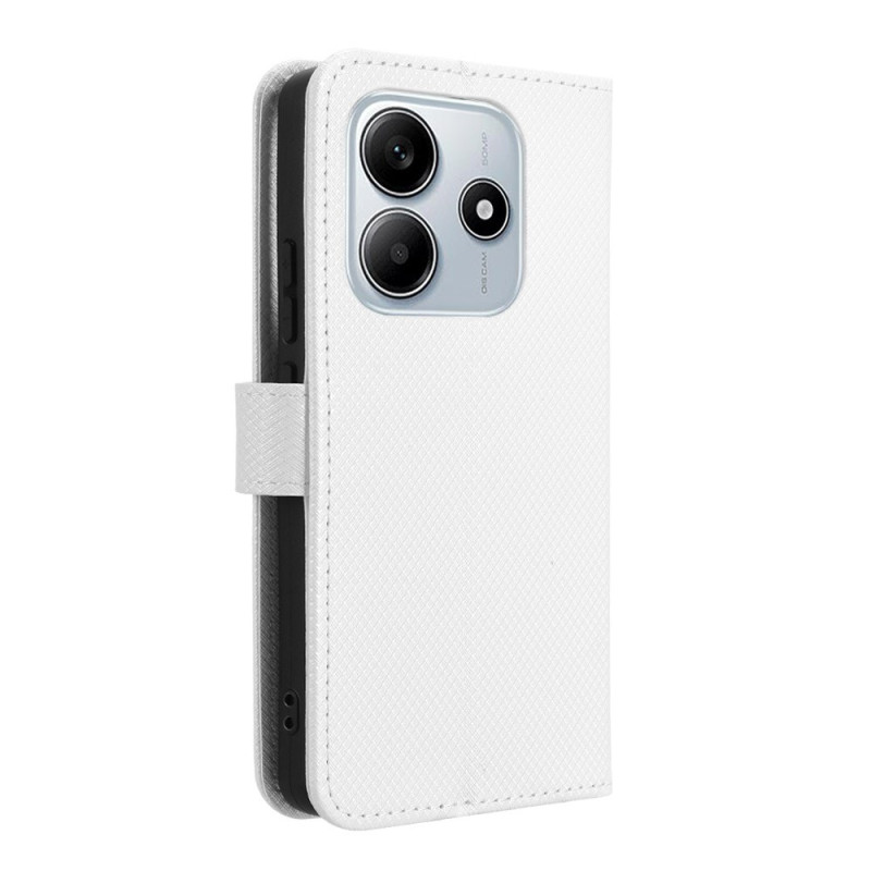 Snyggt plånboksfodral i PU-läder med diamantstruktur för Xiaomi Redmi Note 14. Erbjuder fullt skydd, kortfack, anteckningsficka och stativfunktion.
