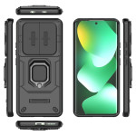 Skydda din Xiaomi Redmi Note 15 4G med detta robusta PC- och TPU-fodral. Det har ett skjutbart linsskydd, ett integrerat roterande kickstand och upphöjda kanter för optimalt skydd mot stötar och repor.