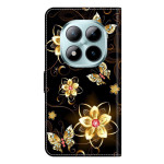 Upptäck detta eleganta plånboksfodral prytt med blommor och fjärilar i guld. Plånboksfodralet är tillverkat av högkvalitativt konstläder och kombinerar stil och funktionalitet med sitt vikbara stativ, kortfack och säkra magnetstängning.