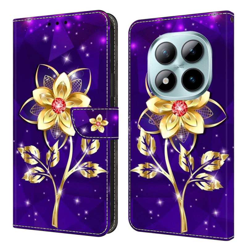 Skydda din Xiaomi med stil med detta sofistikerade plånboksfodral med guldblommor på en lila bakgrund. Med kortplatser, ett vikbart stativ och en säker magnetisk stängning kombinerar det stil och funktionalitet.