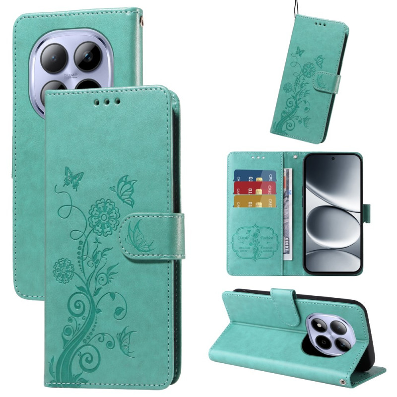 Étui portefeuille élégant pour Xiaomi Redmi Note 15 Pro 4G avec motif papillon floral. Comprend un support intégré, plusieurs emplacements pour cartes et une dragonne pratique. Protection complète contre les chutes et rayures.