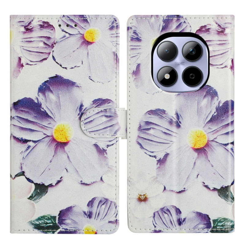 Skydda din Xiaomi Redmi Note 15 Pro 5G med stil med detta plånboksfodral med klaff som har ett vackert lila blommotiv. Med kortplatser, ett integrerat stativ och en avtagbar handrem kombinerar det stil och funktionalitet.