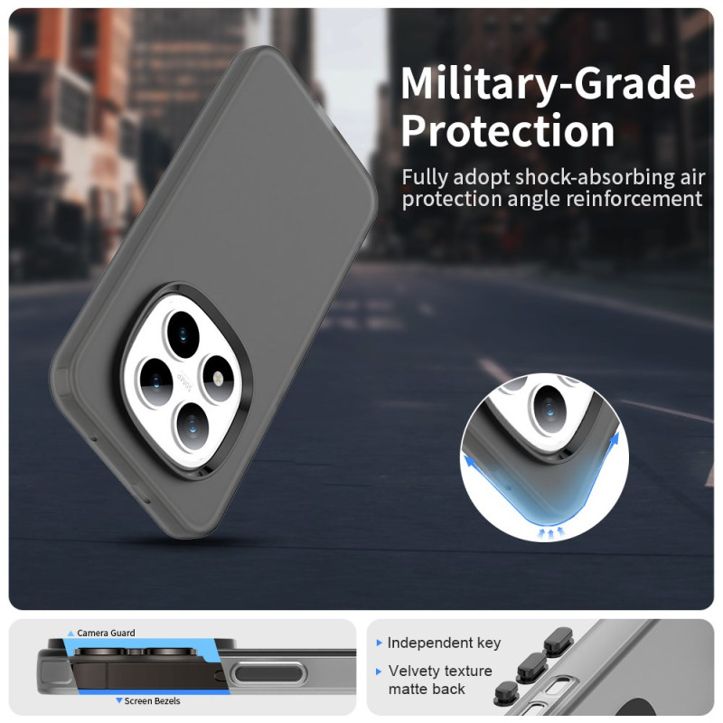Skydda din Xiaomi Redmi Note 15 Pro 5G med detta ultra-impact-resistenta fodral. Designat med luftkuddar i alla fyra hörn, erbjuder det militärt skydd mot fall. Dess antismutsiga matta finish och förstärkta skydd för fotolinsen kombinerar säkerhet och elegans för daglig användning.