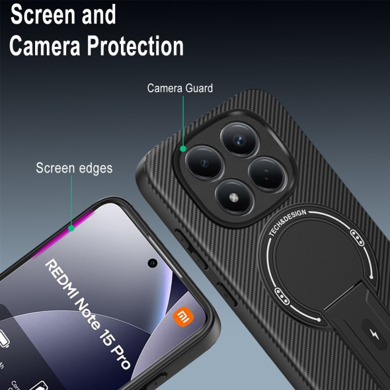 Protégez votre Xiaomi Redmi Note 15 Pro 5G avec cette coque hybride à texture fibre de carbone. Dotée d'un support pliable intégré, d'une technologie de dissipation thermique et d'une protection militaire contre les chutes, elle allie style et fonctionnalité.