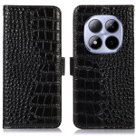 Elegant plånboksfodral i äkta läder med krokodilstruktur för Xiaomi Redmi Note 15 Pro Plus 5G. Inbyggt RFID-skydd, 3 kortplatser, 1 ficka för anteckningar och justerbart visningsstativ. Säker magnetisk stängning...
