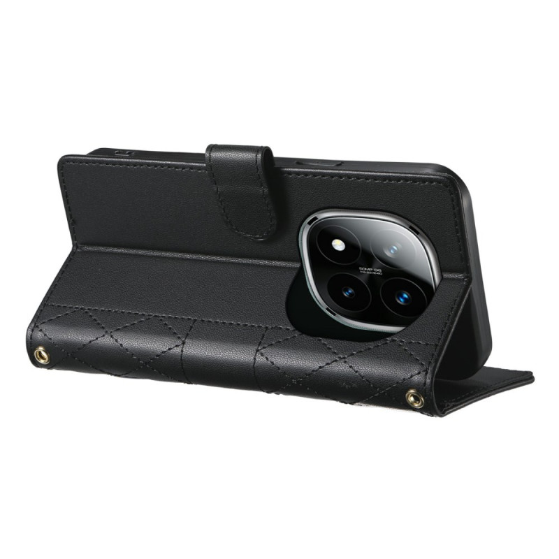 Snyggt plånboksfodral i PU-läder med diamantquiltad design för Xiaomi Redmi Note 15 Pro Plus 5G / Poco M8 Pro 5G. Med 3 kortplatser, 1 kontantficka, integrerad stativfunktion och avtagbara axelremmar (korta och långa) för mångsidig användning.