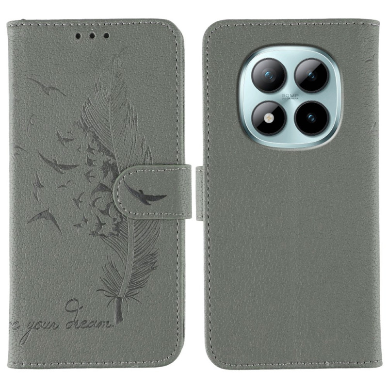 Upptäck detta eleganta plånboksfodral i texturerat PU-läder för din Xiaomi Redmi Note 15 Pro Plus 5G. Med ett vackert tryckt fjädermönster kombinerar det stil och funktionalitet med 3 kortfack, ett sidofack och ett justerbart stativ för den ultimata visningsupplevelsen.