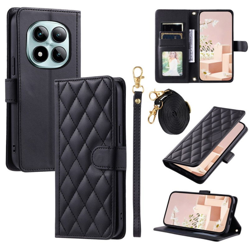Étui portefeuille élégant avec motif losange pour votre Xiaomi Redmi Note 15 Pro Plus 5G / Poco M8 Pro 5G. Doté de multiples poches pour cartes, d'un compartiment pour monnaie et de sangles pratiques (poignet et épaule 145cm).