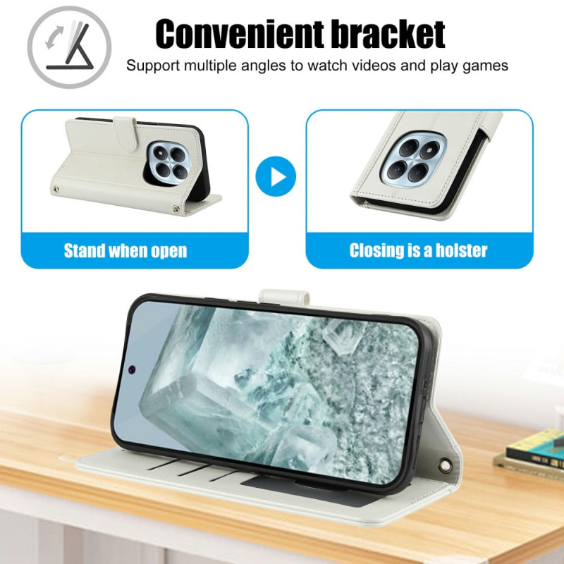 Étui portefeuille élégant en cuir PU avec fonction support intégrée, 3 emplacements pour cartes et dragonne amovible. Protection complète contre les chocs et rayures tout en gardant vos essentiels à portée de main.