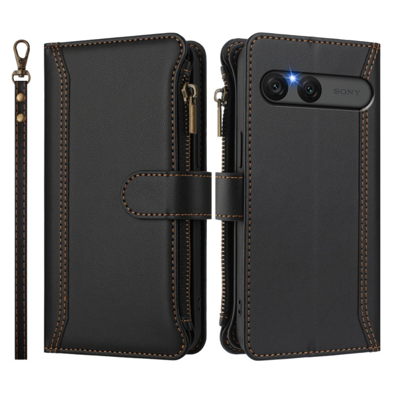 Premium leather case for Sony Xperia 10 VII with 9 card slots, zip fastening and stand function. Made from high-quality PU leather and TPU, it offers durable protection against knocks and drops. The zipped pocket and numerous slots make it easy to store cards, money and other small items.
