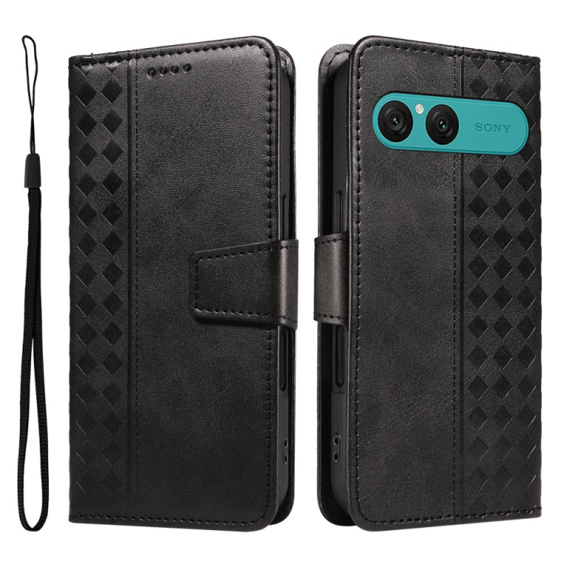 Stylish PU leather case with grid pattern for Sony Xperia 10 VII. Multiple functions including card holder, ticket pocket, hands-free viewing stand and detachable hand strap. Offers complete protection with its shock-absorbing TPU interior.
