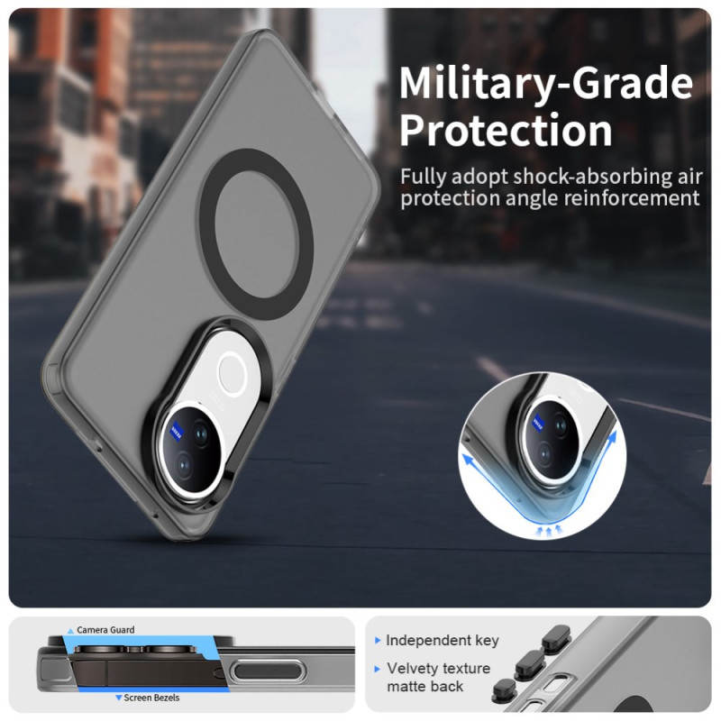 Protect your Vivo V50 5G with this premium MagSafe compatible hybrid case. Shock-resistant design with premium materials, raised edges to protect the screen and camera, and optimal magnetic wireless charging. Slim and elegant design.