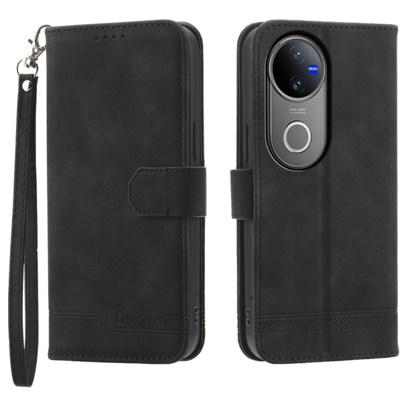 Elegant wallet case in PU leather with engraved lines motif for Viivo V50 5G. Practical design with card slots, adjustable stand function and full protection. Secure magnetic closure and hand strap included.
