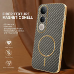 Stylish and robust protection for your Vivo V50 Lite. Flexible TPU design with premium electroplated finish and non-marking carbon fibre texture. Raised edges to protect the screen and camera, precise cutouts and magnetic charger compatibility.