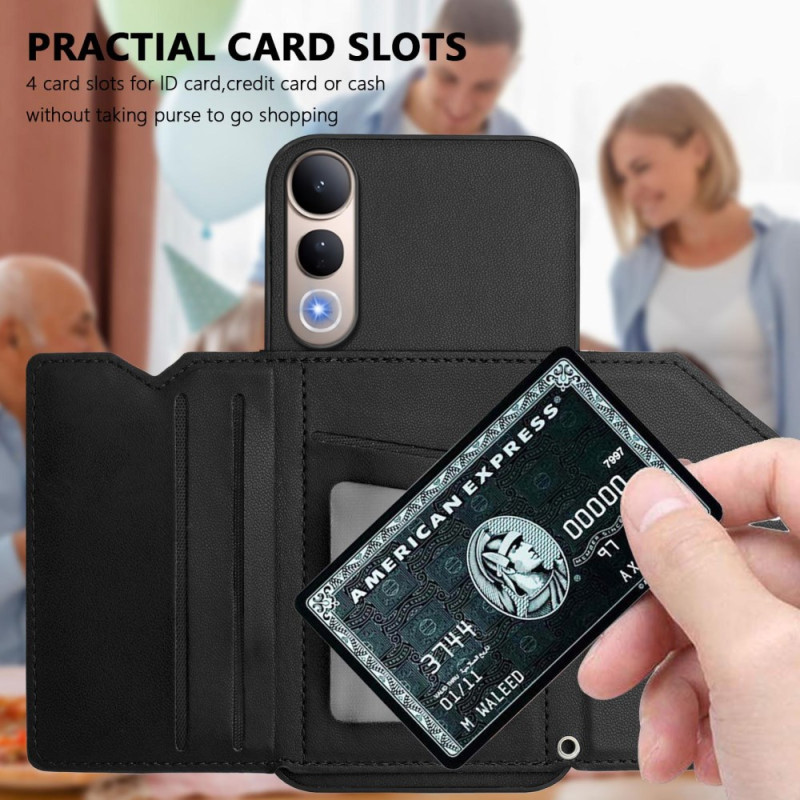 Protect your Vivo V50 Lite 5G in style with this multifunctional case. Featuring integrated card holders, an adjustable stand and a matching hand strap, it combines elegance and practicality for everyday use.
